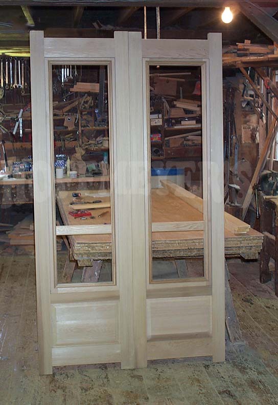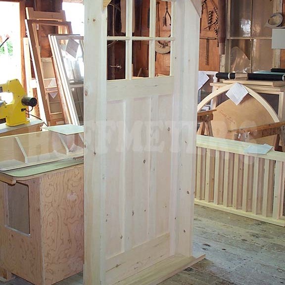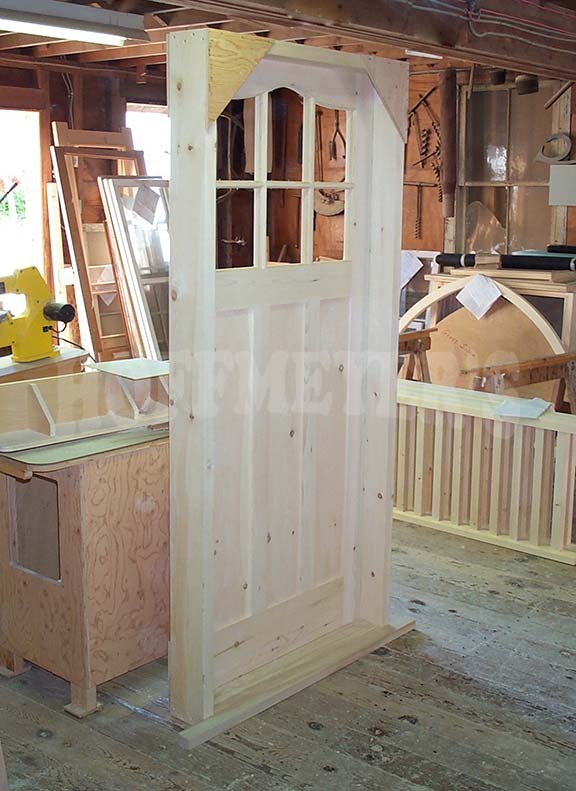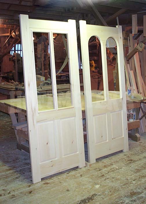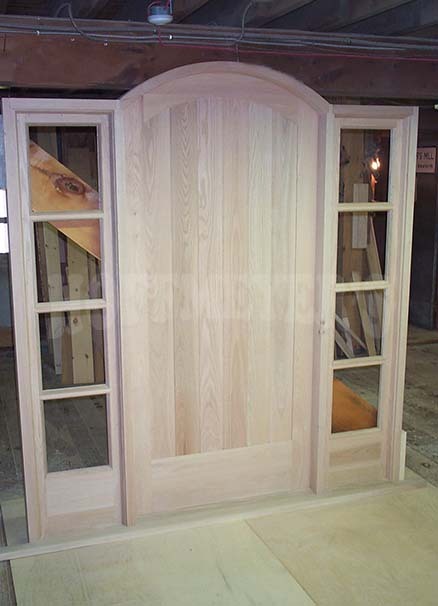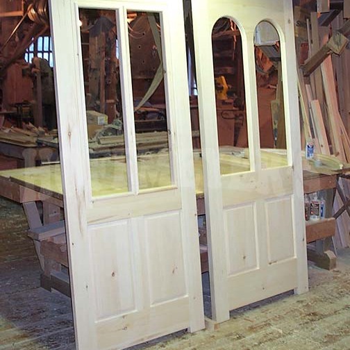 This historic building in Shelton Connecticut had beautiful arched windows that were badly in need of replacement. The customer removed one of the old windows and shipped it to us so that we could reproduce it as closely as possible. Using 2 1/4" thick African Mahogany as our material, we carefully figured out the appropriate layout, casings, and other embeshments. The stepped arch muntins meant our measurments had to be perfect as any errors would be extremely obvious. The result was, we made these windows like the old ones - except ours were even better!